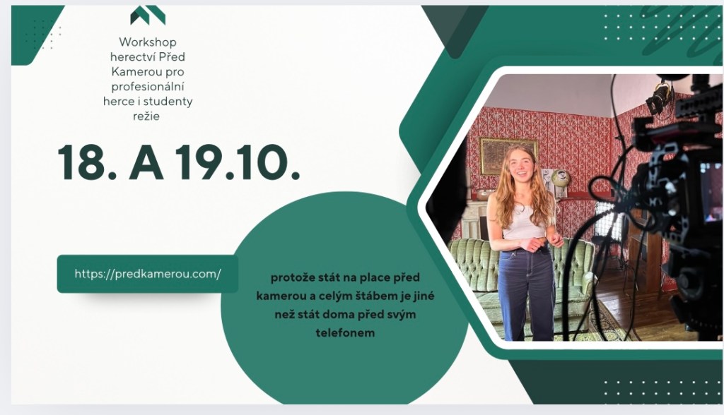Další workshop Před Kamerou se koná 18 a 19. října 2025 na FAMU, Smetanovo nábřeží 2, Praha 1